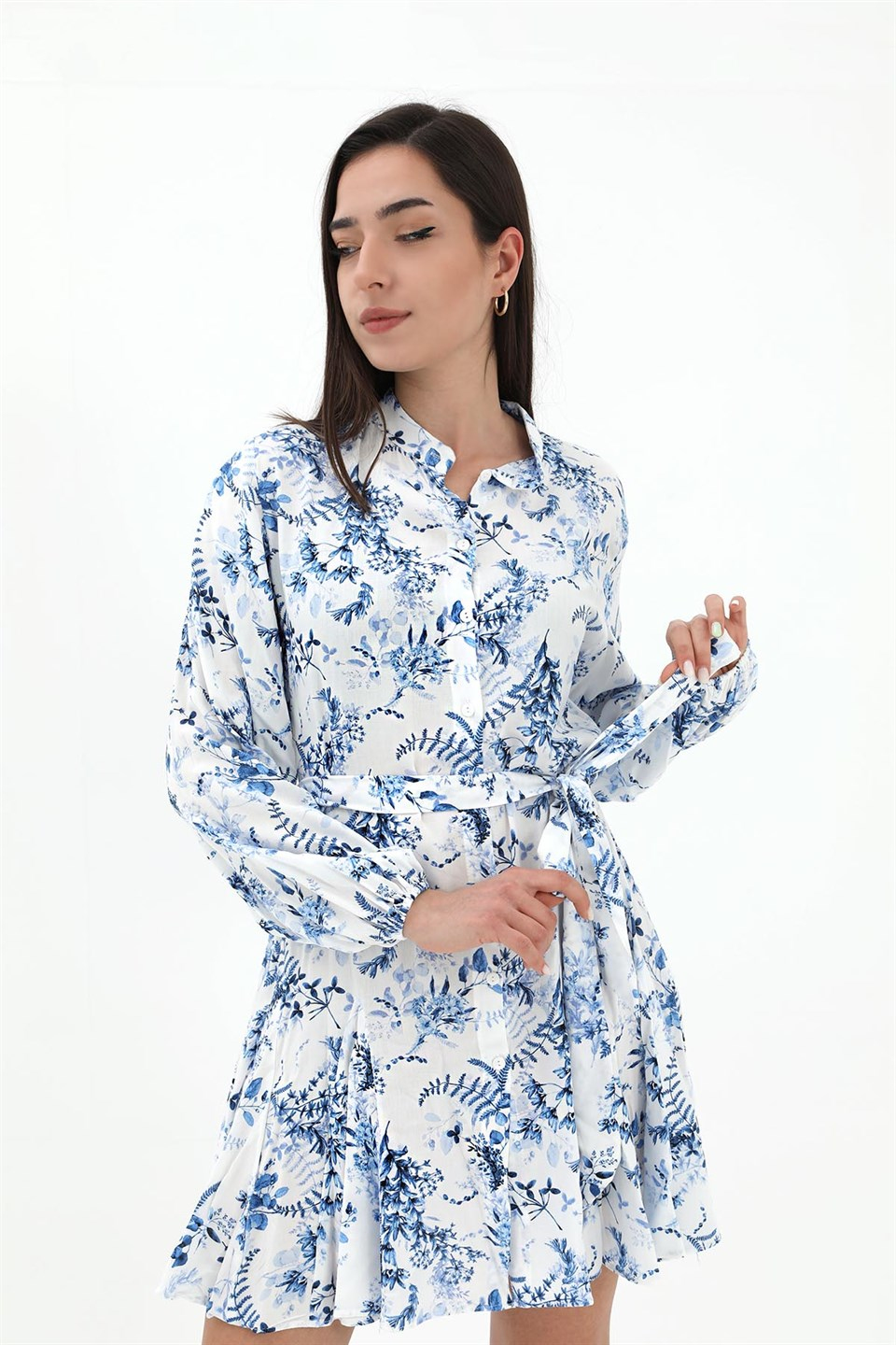 Eteği Volanlı Viskon Elbise - Mavi (202296522)